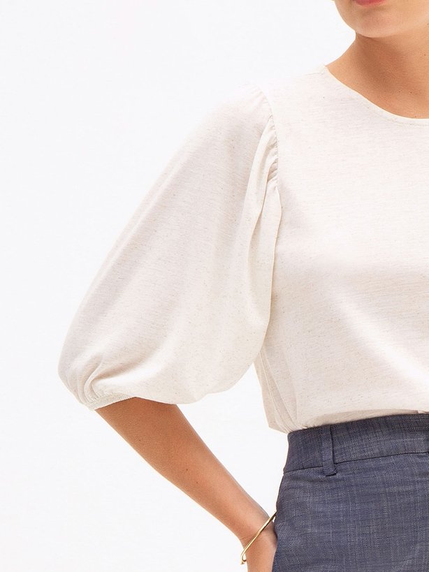 Sobre a Blusa Manga 7/8 em Malha com Linho Natural Yone