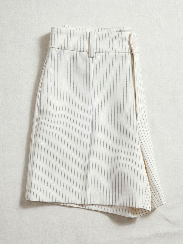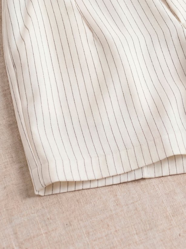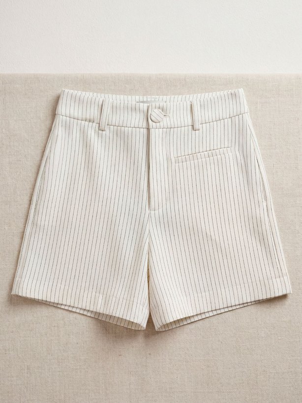 A bermuda Giulieta é confeccionada em uma sofisticada base de viscose, com a clássica padronagem risca de giz. Sua modelagem oferece um caimento solto ao corpo, proporcionando conforto e estilo. Detalhes como o falso bolso embutido frontal e o botão forrado realçam o cuidado com o design da peça. Além disso, a peça conta com pences traseiras para melhor vestibilidade e passantes no cós para possibilitar o uso de cintos. No cós traseiro, a peça apresenta placa personalizada da marca.