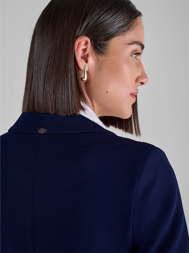 Em alfaiataria com elastano criando uma peça elegante e confortável. O elastano garante movimento e mobilidade para os mais diversos compromissos da mulher moderna. Sua modelagem é clássica, mais enxuta e curta, para a mulher elegante e tradicional. Todos os blazers da linha Ícones possuem bolsos funcionais, porém é possível notar que os bolsos estão habilmente costurados, integrados à estrutura do tecido de forma discreta e refinada. No entanto, há um detalhe que torna o blazer ainda mais funcional e prático: a possibilidade de desfazer essa costura. Apesar de inicialmente os bolsos parecerem apenas decorativos, eles foram projetados de maneira inteligente para serem totalmente funcionais. Essa versatilidade é uma das razões pelas quais nossa linha ÍCONES é tão exclusiva.