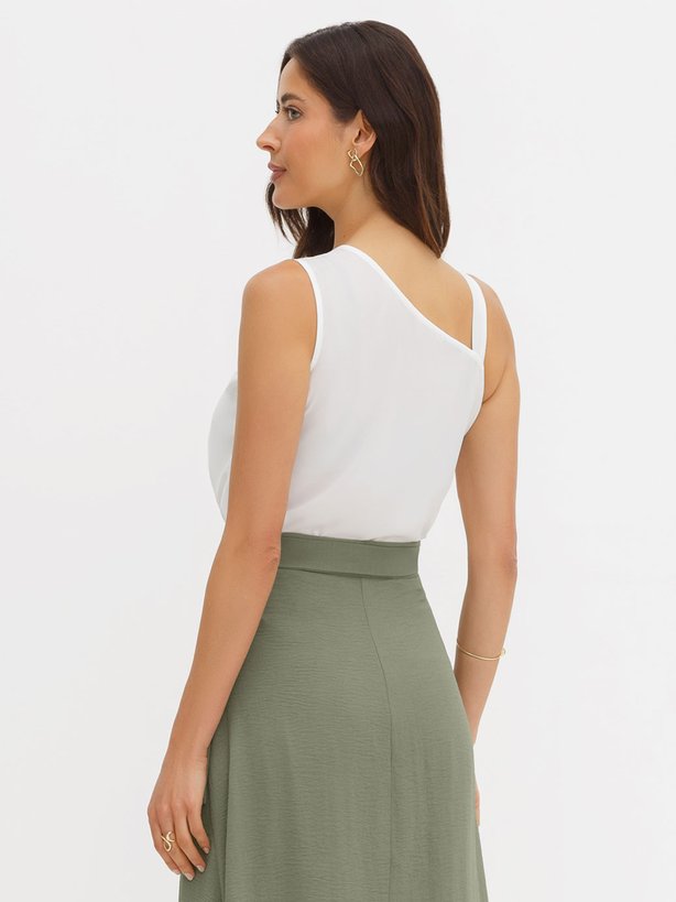 A blusa Olga aposta em assimetria para criar um visual moderno e elegante. Com pregas no ombro e corte minimalista, é perfeita para quem deseja fugir do óbvio com estilo. Ideal para produções versáteis que vão do dia à noite.
