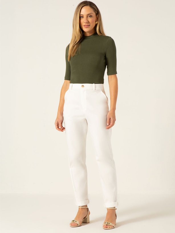 A blusa canelada de gola alta Bertha Verde é confeccionada em malha canelada, garantindo conforto durante o uso. Sua modelagem é mais ajustada ao corpo, valorizando a silhueta. Com gola alta e mangas ¾, essa peça é perfeita para composições versáteis e modernas. Além disso, ganha destaque especial na medalha de metal com gravação do monograma Principessa aplicada abaixo da gola costas, que finaliza o design com toda autenticidade da marca.
