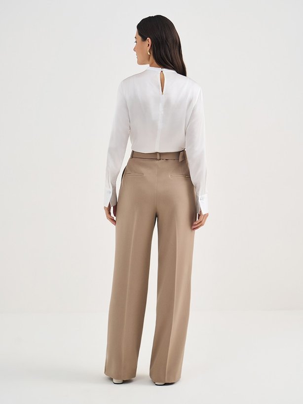 A Blusa Valquiria é uma peça que transmite elegância e exclusividade. Com modelagem mais solta ao corpo, os detalhes especiais que entregam o diferencial dessa peça estão em seu tecido de seda legítima acetinada, com toque macio e caimento leve, e em sua gola com detalhe de pregas frontais, que entregam elaboração e sofisticação. Desenvolvida no tom de off white, é versátil e atemporal. Combine com calça de alfaiataria ou saia, para um look mais elegante, podendo ainda ser usada por baixo de outra peça, com blazer, em sobreposição, por exemplo. Ideal para compromissos que exigem uma imagem alinhada, como ambientes de trabalho, jantares ou eventos formais. Adicione acessórios dourados para elevar os detalhes da peça.