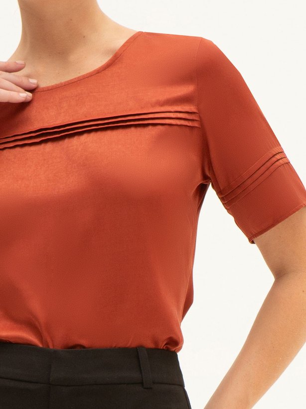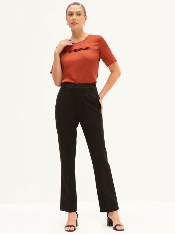 A Blusa Raiany é perfeita para composições elegantes e práticas, da rotina de trabalho a produções mais refinadas. Seu brilho acetinado sutil traz sofisticação, tornando-se um curinga para diferentes ocasiões. Para um look de escritório chique, combine com uma calça de alfaiataria em tons neutros e finalize com um scarpin. Já para momentos mais casuais, coordene com jeans de lavagem escura e sandálias. Se quiser um visual mais moderno, aposte em sobreposições com coletes estruturados, ou use com uma saia midi fluida e acessórios em dourado. Versátil, elegante e atemporal, a Blusa Raiany é daquelas peças que transita com facilidade entre o básico bem feito e o look elaborado.