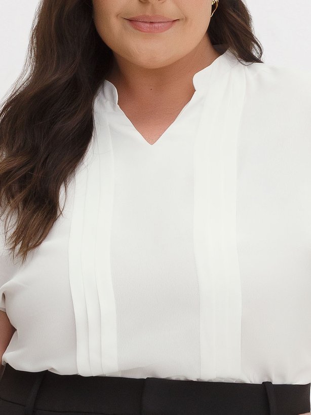 A blusa Neia é confeccionada em crepe classic com discreta textura, um tecido leve que alia elegância, conforto e fluidez. Sua modelagem levemente solta ao corpo, com comprimento tradicional e ombros deslocados, garante um caimento mais moderno e sofisticado, valorizando a silhueta com naturalidade. O decote em V é harmoniosamente complementado pela gola eclética, que imprime um toque de originalidade ao design. Detalhes de pregas delicadas na parte frontal acrescentam movimento e textura, conferindo à peça um visual dinâmico e atemporal. Um modelo que se destaca pela sutileza dos acabamentos e pela versatilidade do estilo contemporâneo.