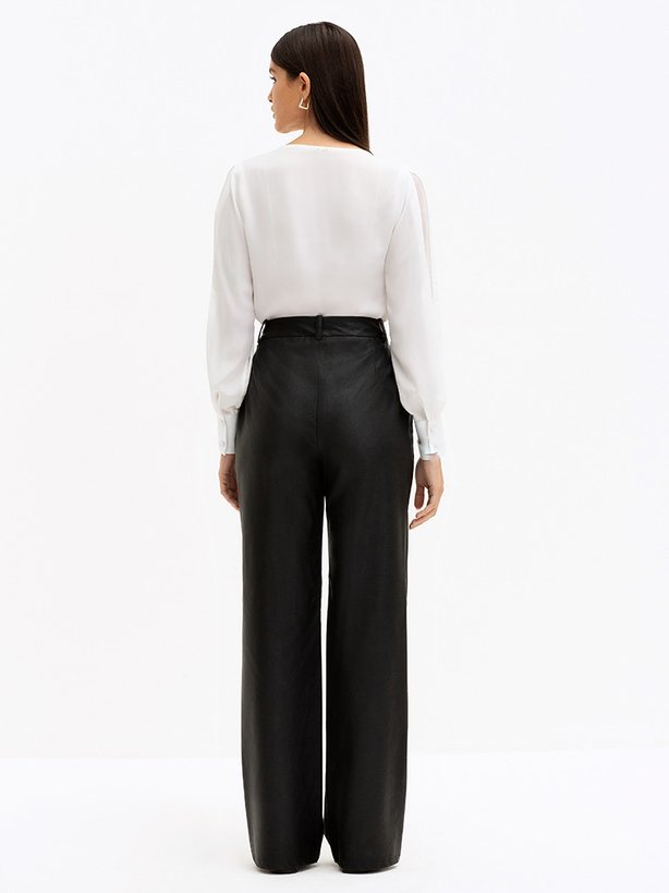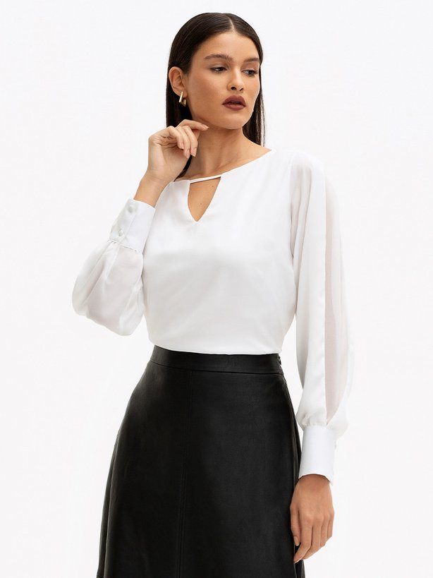 Sobre a Blusa Manga Longa com Recorte e Transparência nas Mangas Off White Carin