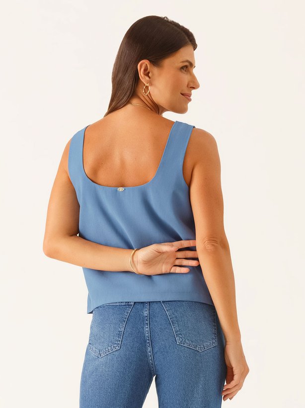A blusa Gleice é confeccionada em tecido de viscose, que confere um toque macio, caimento fluido com leve estrutura e aparência sofisticada. Sua modelagem é reta, sem mangas, com pence de busto para melhor ajuste ao corpo e comprimento abaixo do cós, permitindo o uso tanto por dentro quanto por fora da calça. Possui decote quadrado com linhas limpas e retas, reforçando seu apelo contemporâneo. Ideal como base de composição de looks em sobreposição com blazers.