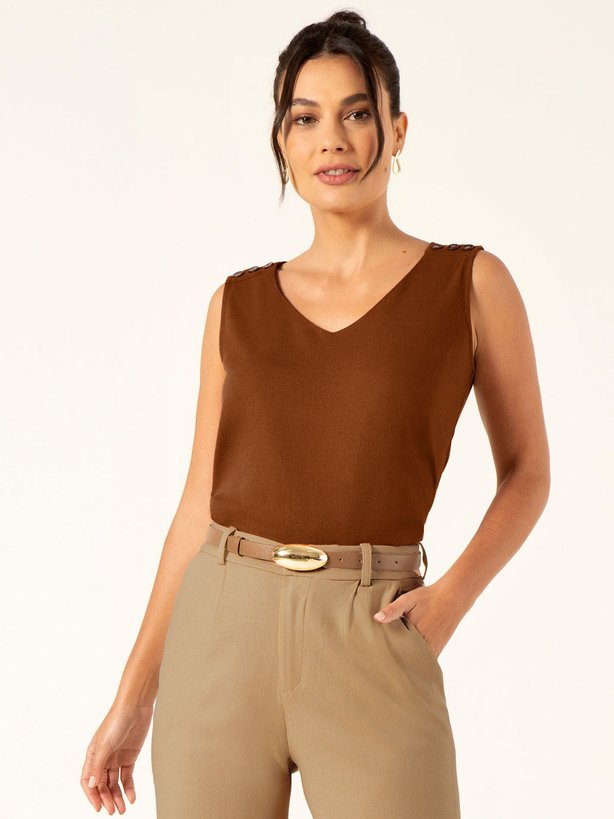 A blusa Helga é confeccionadam tecido natural fresh uma base que contêm linho em sua composição, a mistura do linho com outras fibras pode melhorar a resistência do tecido e aumentar o seu conforto. Com modelagem solta ao corpo, essa peça valoriza diferentes silhuetas e proporciona liberdade de movimento. O decote em V alonga o colo com delicadeza, enquanto as pences no busto garantem um ajuste sutil e bem estruturado. O charme extra fica por conta dos botões rajados aplicados decorativamente, que adiciona um toque de personalidade ao visual. As aberturas laterais dão leveza ao caimento, tornando a blusa ideal para looks casuais ou produções mais elegantes.