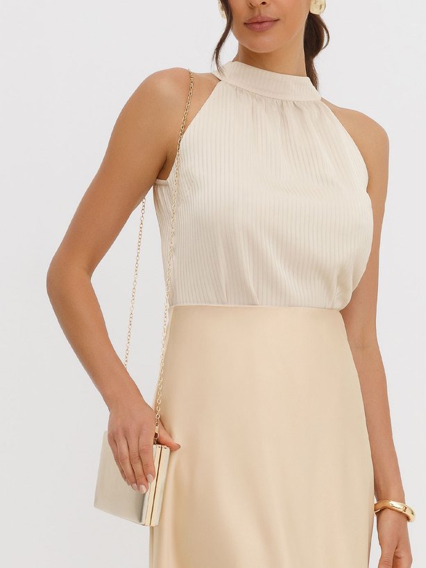 A bolsa clutch Croácia é confeccionada em material sintético na cor dourada. O modelo possui fecho de encaixe, localizado na parte superior, garantindo praticidade e segurança. Seu tamanho compacto de 20 cm de altura de 12 cm de altura acomoda os itens essenciais sem perder a elegância. A alça removível conta com alça dourada, que dá um detalhe minimalista e sofisticado. Sendo uma ótima opção para utilizar com looks elegantes e refinados.