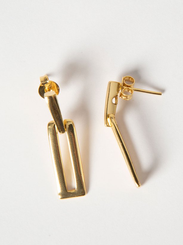 O Brinco Portland é confeccionado em metal de alta resistência com banho dourado e acabamento polido, apresentando formato retangular alongado com recorte central vazado. Mede aproximadamente 3 cm e possui fechamento por tarraxa, oferecendo praticidade e segurança no uso. O design geométrico com linhas marcantes equilibra estrutura e leveza, resultando em uma peça moderna e versátil. Finalizado com proteção em polímero orgânico alemão, é antialérgico, resistente à oxidação e ideal para uso prolongado. Com estética minimalista e traços sofisticados, é perfeito para elevar produções casuais ou compor visuais mais elegantes com autenticidade.