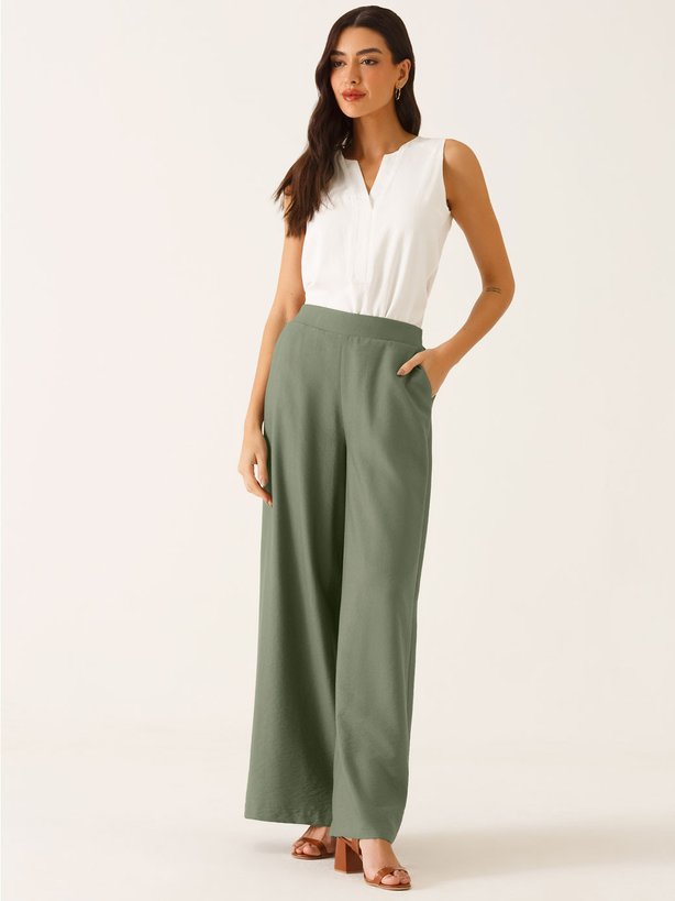 A calça Salete verde oliva combina conforto e estilo em uma modelagem ampla e fluida. O cós com elástico nas costas traz praticidade e um toque moderno, tornando a peça perfeita para produções casuais sofisticadas. Atemporal e versátil, é ideal para composições que unem leveza e elegância.