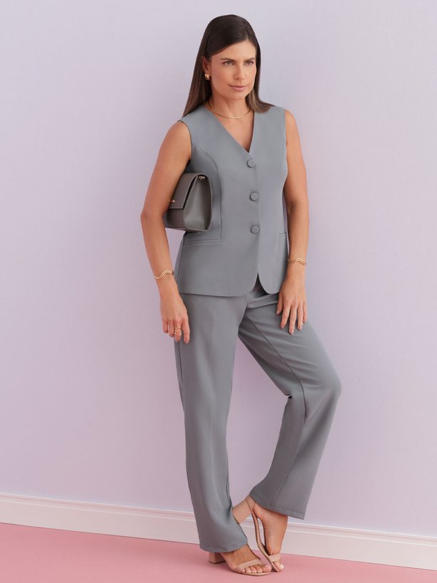 A calça Belymara entrega estrutura e flexibilidade na medida certa, oferecendo um caimento impecável que acompanha o corpo com conforto e elegância. Confeccionada em tecido com elasticidade, proporciona maior liberdade de movimento e adaptação ao corpo, sem comprometer a estrutura alinhada da peça. Em tom cinza, reforça sua proposta moderna e urbana, mantendo um visual sofisticado e atemporal. A peça conta com bolso faca funcional, braguilha tradicional e cós com fechamento interno em gancho de metal, garantindo ajuste seguro e acabamento discreto. Possui ainda presilhas para cinto, ampliando as possibilidades de composição. Os vincos marcados na frente e nas costas valorizam a modelagem, alongam a silhueta e reforçam a estética alinhada da peça. Com acabamento refinado e design versátil, a calça Belymara é ideal para produções elegantes em diferentes ocasiões, unindo funcionalidade, conforto e presença.