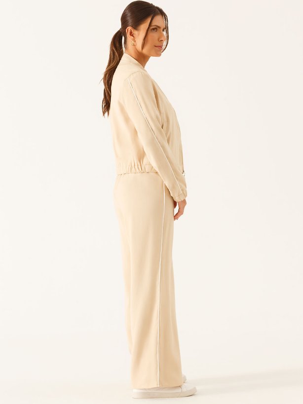 A calça Vitoriana é a união perfeita entre elegância e conforto. Com caimento leve e toque macio, a peça valoriza a silhueta de forma natural e sofisticada. Sua modelagem moderna wide leg e linhas limpas conferem um visual refinado e atemporal. O tom neutro reforça sua versatilidade, tornando-a ideal para compor desde produções casuais até looks mais elaborados, sempre com um ar de leveza e sofisticação. O destaque fica por conta do friso decorativo em cor contraste na lateral da perna, um detalhe que adiciona personalidade e eleva o estilo da peça com um toque contemporâneo.