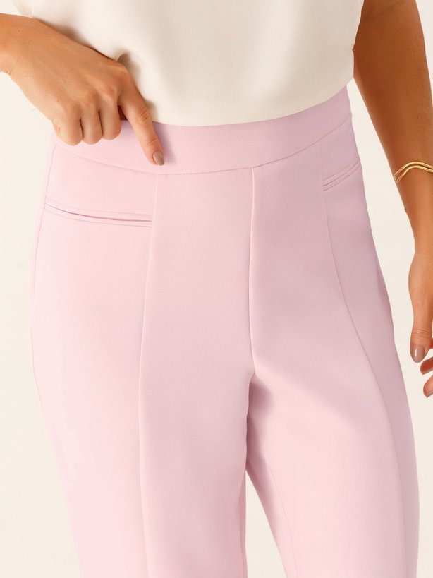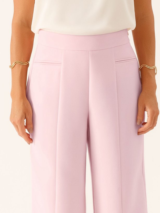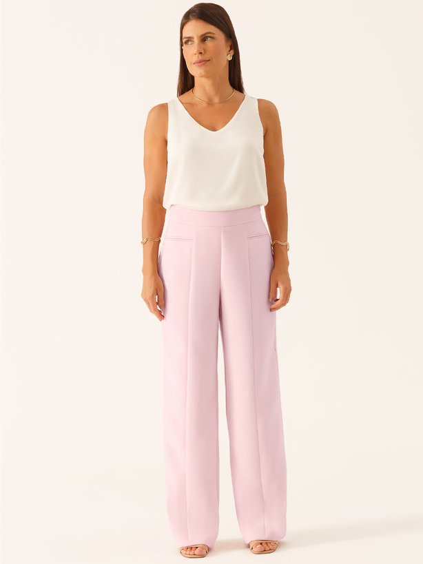 A calça Beatriz é confeccionada em tecido de alfaiataria, que alia fluidez e estrutura com elegância. Possui modelagem wide leg e cintura média, proporcionando caimento equilibrado e confortável ao vestir. O tom rosado confere delicadeza e modernidade, tornando-a ideal para composições elegantes e contemporâneas. A peça apresenta recorte central ao longo das pernas, detalhe que alonga a silhueta e acrescenta sofisticação ao design. Conta ainda com bolsos falsos embutidos, que mantêm a estética clean e alinhada. O fechamento lateral com zíper invisível garante praticidade e acabamento discreto, enquanto as pences nas costas contribuem para melhor ajuste e valorização do corpo. Uma calça versátil, refinada e pensada para unir funcionalidade e estilo.