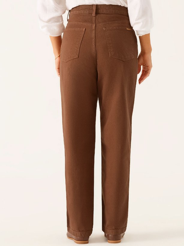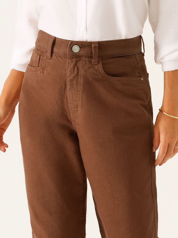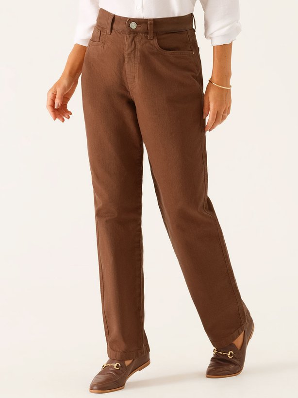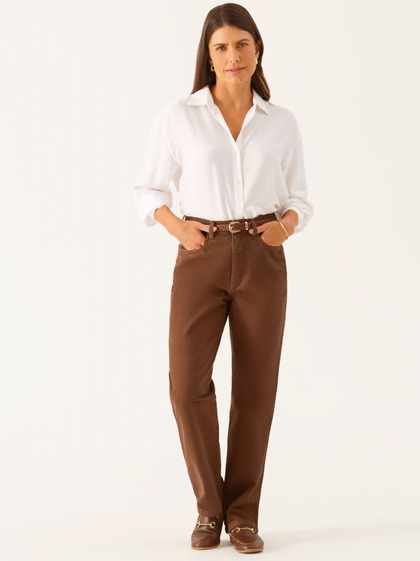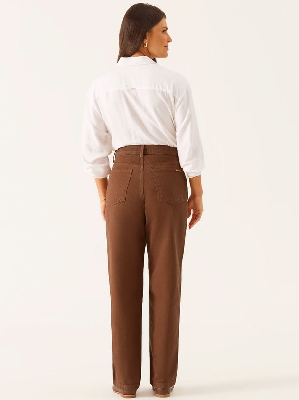 A calça Violetta une modernidade e charme em uma proposta versátil e elegante. Confeccionada em jeans marrom-escuro, apresenta acabamentos tradicionais que realçam sua estética atemporal. A modelagem reta traz estrutura, garantindo equilíbrio ao caimento, enquanto os bolsos funcionais adicionam praticidade ao uso cotidiano. O tecido oferece ajuste impecável, valorizando o corpo com suavidade e estilo. Seu tom sofisticado permite composições que transitam do casual elegante ao urbano moderno, resultando em uma peça que combina conforto, personalidade e presença em cada detalhe.
