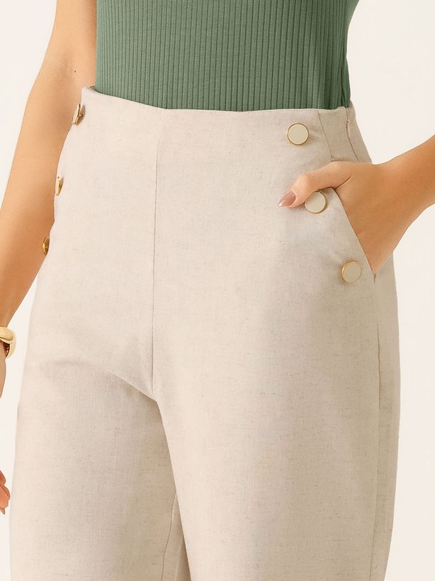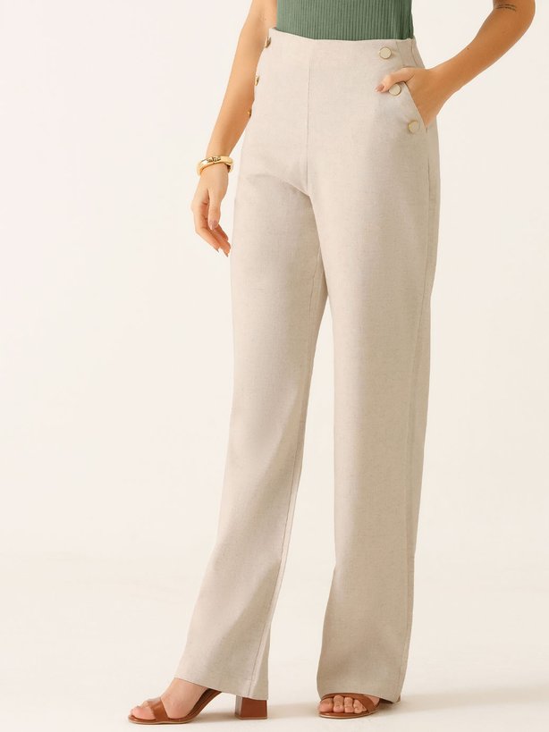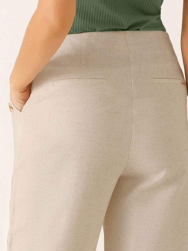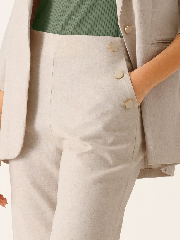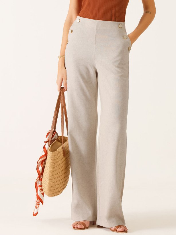 A Calça Melissa trouxe um detalhe único, que deixa a peça com estilo minimalista e moderno, que são seus botões em resina branca com bordas douradas na região frontal da calça, deixando elegância por onde passa. Para um acabamento excepcional, a calça traz zíper invisível na lateral da peça, deixando o visual mais clean e sofisticado. Na parte traseira traz pences, para valorizar ainda mais a silhueta. Por ser uma peça com alto conforto, elegância e de fácil combinação a calça pode transitar com facilidade no armário.