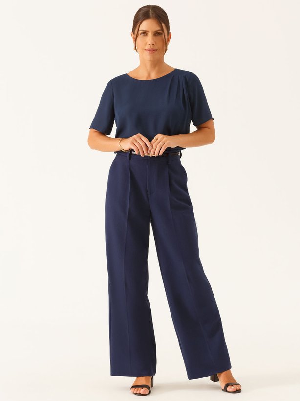 A calça Natiele é confeccionada em alfaiataria premium, uma base com ótimo caimento e tecido nobre em composição de viscose, poliéster e elastano, e apresenta uma modelagem wide leg, com caimento solto ao corpo desde a região da coxa até a barra. A calça possui bolso faca funcional nas laterais e placa dourada personalizada da marca. O vinco de passadoria e o discreto fechamento por colchetes internos de metal fazem com que a peça se destaque pelos seus detalhes cuidadosamente pensados. Além disso, a peça conta com presilhas para passar cinto.