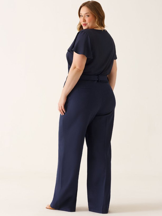 A calça Cora é confeccionada em alfaiataria premium que contém viscose em sua composição. Apresenta uma modelagem Wide Leg, com caimento solto ao corpo desde a região da coxa até a barra. A calça possui bolso invisível funcional nas laterais e falsos bolsos embutidos traseiros com placa dourada personalizada da marca. O vinco de passadoria e o discreto fechamento por colchetes internos de metal fazem com que a peça se destaque pelos seus detalhes cuidadosamente pensados. Além disso, a peça conta com presilhas e acompanha cinto, desenvolvido no mesmo tecido do corpo, e uma fivela dupla em meia argola dourada que eleva a peça a um visual sofisticado, assinando a produção.
