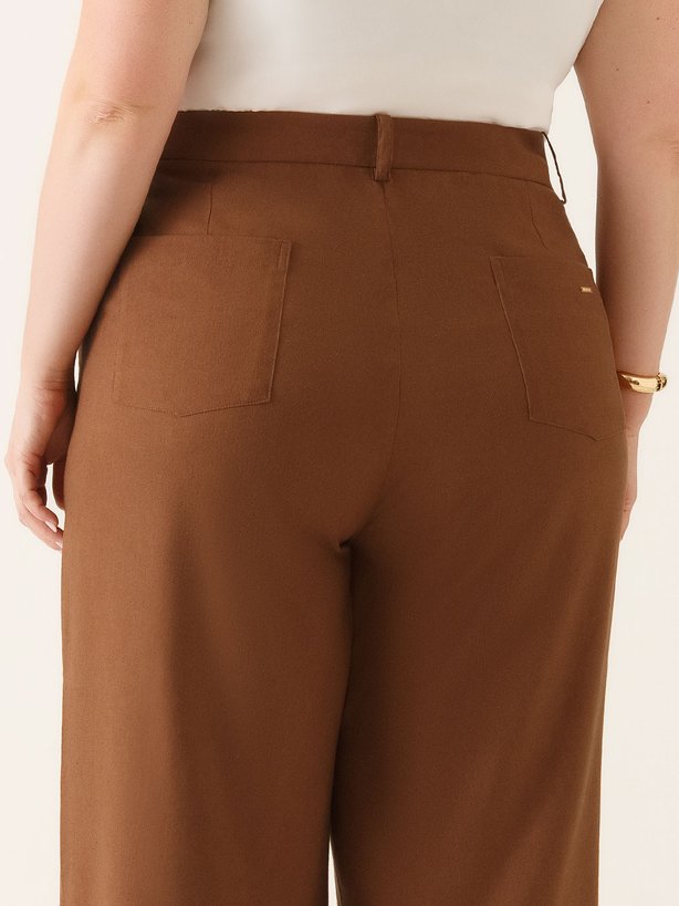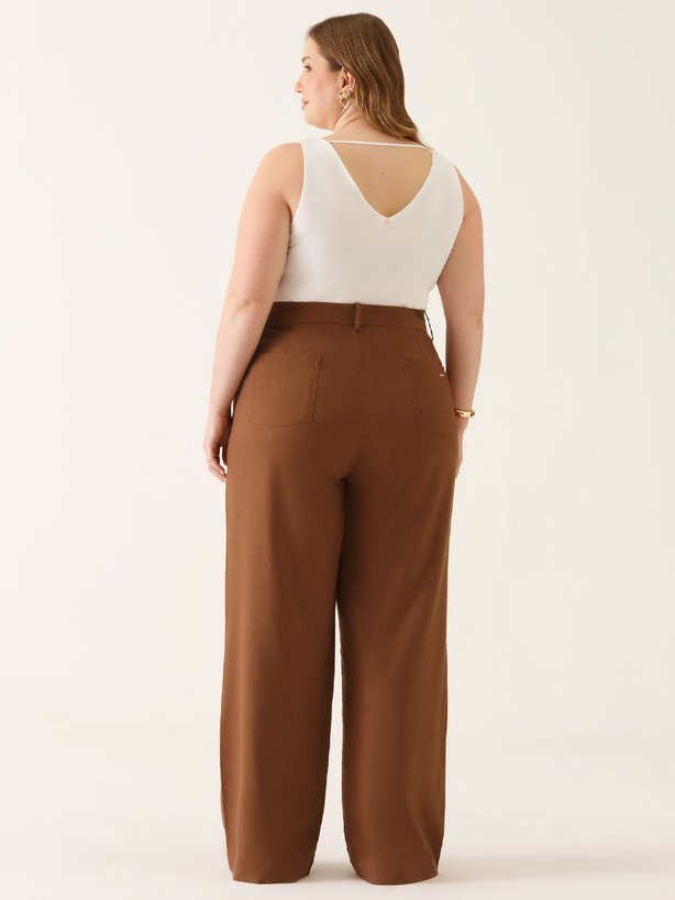A calça Naiane é confeccionada em tecido natural fresh uma base que contêm linho em sua composição, a mistura do linho com outras fibras pode melhorar a resistência do tecido e aumentar o seu conforto. Apresenta modelagem Wide Leg com caimento solto ao corpo desde a região da coxa até a barra. A calça possui detalhes como bolso faca funcional e presilhas no cós. O fechamento frontal do cós é feito por um botão rajado em formato orgânico, o contraste delicado entre o botão e o linho mocha mousse cria uma harmonia visual que é ao mesmo tempo moderna e atemporal. Na parte traseira do cós, conta com placa personalizada da marca e pences que proporcionam uma melhor vestibilidade.