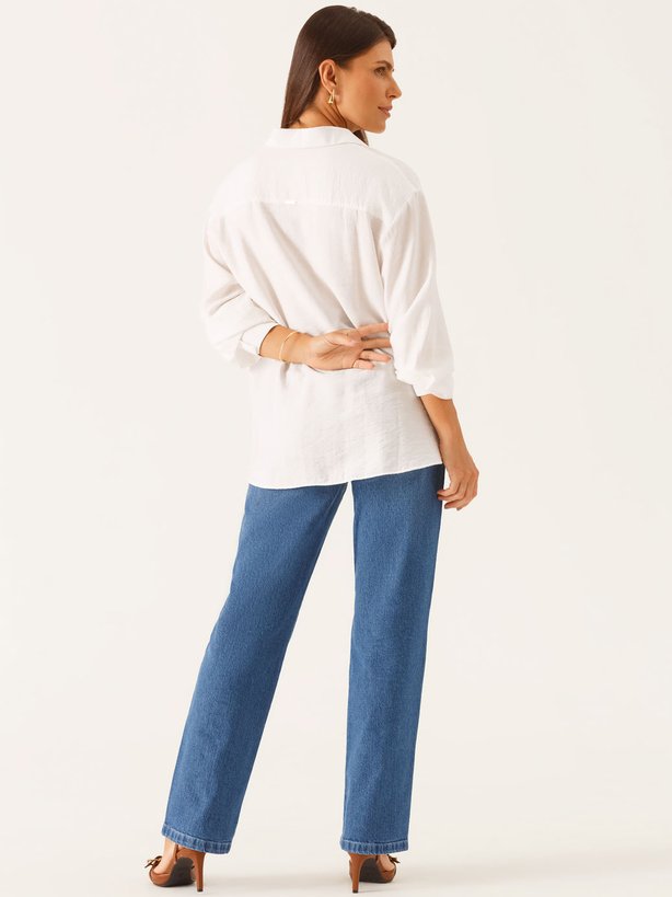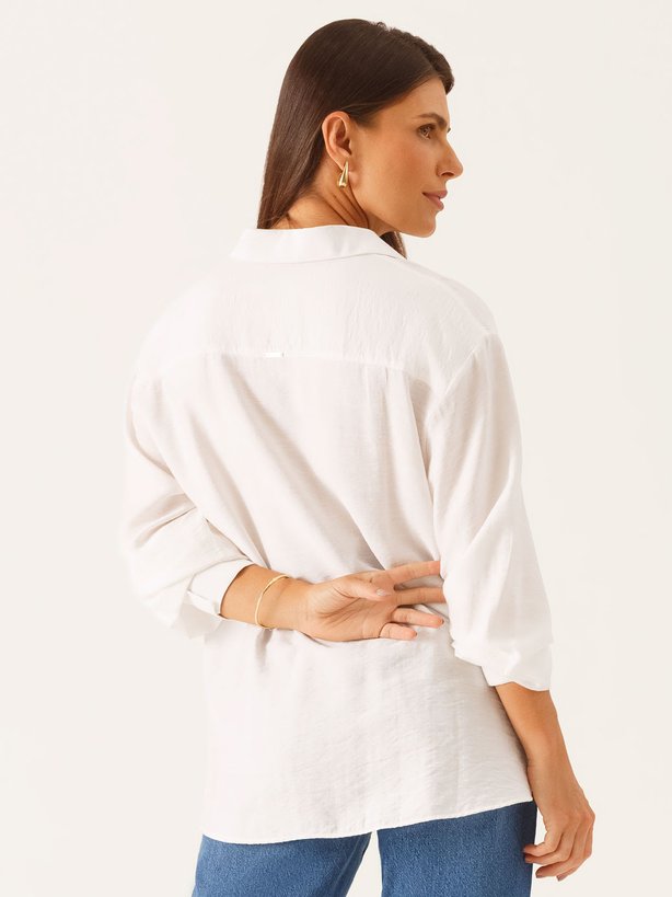 Camisa Manga Longa Boxi em Viscose Off White Taila