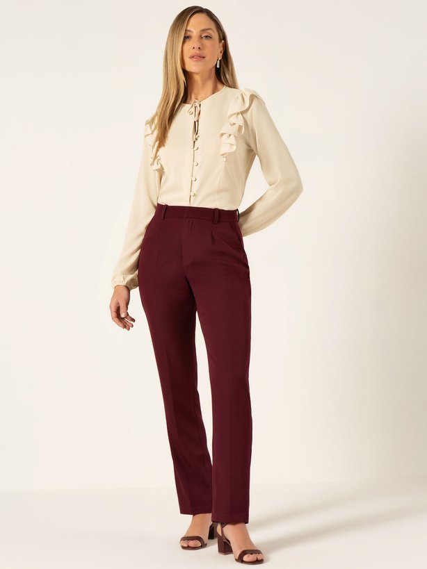 A Camisa Kassandra combina delicadeza e sofisticação em uma proposta moderna e versátil. Confeccionada com modelagem comfy, a peça oferece leveza ao vestir e ótimo caimento, sendo ideal para o dia a dia ou produções mais elaboradas. A cor aveia é um tom neutro e remete a estética clean e minimalista, perfeito para combinações neutras chic. Seu design conta com gola com delathes de amarração e acabamento delicado, além de recortes frontais duplos com babado embutido, que trazem feminilidade e movimento à peça. As mangas longas levemente bufantes com franzido e elástico nos punhos reforçam o toque romântico e confortável da modelagem. A vista frontal com revel embutido acomoda seis botões forrados e caseados com acabamento refinado. A camisa possui barra levemente arredondada e costas mais alongadas, garantindo liberdade de movimento e elegância em qualquer composição.