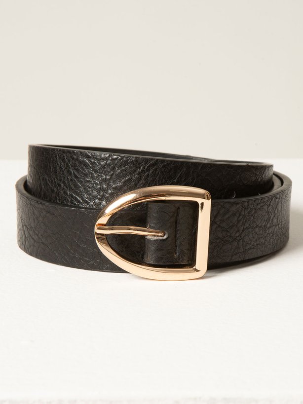 Cinto Keyka Preto com fivela de metal é aquele item curinga que não pode faltar no guarda-roupa. Confeccionado em material sintético de alta qualidade o cinto apresenta leve textura, com a largura de 3 cm oferece durabilidade, leveza e um ótimo acabamento, ideal para complementar seus looks com praticidade e estilo. A fivela em metal dourado com design moderno adiciona um toque sofisticado e elegante, tornando este cinto perfeito para combinações casuais ou mais alinhadas. A cor preta é neutra e versátil, combinando com jeans, calças sociais, vestidos ou saias ideal para qualquer ocasião.