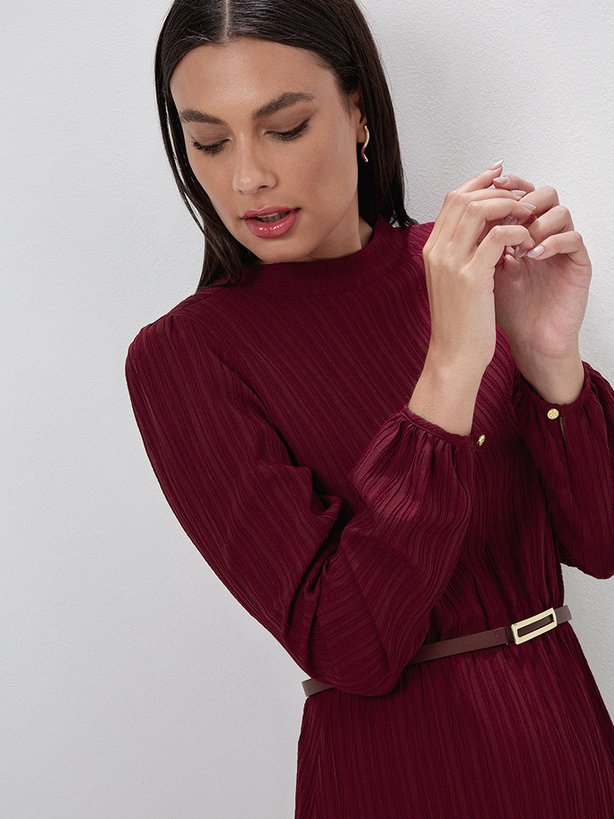 Elegante e versátil, o cinto Liane na cor bordô é a peça ideal para adicionar um toque refinado às produções. Perfeito para marcar a cintura sobre vestidos fluidos, criando uma silhueta bem definida e feminina. Em looks com calças de alfaiataria, ele traz sofisticação na medida certa, complementando blusas leves e camisas estruturadas. A tonalidade bordô adiciona um ponto de cor discreto e elegante, harmonizando bem com tons neutros como off white, bege e preto, além de composições em tons terrosos.