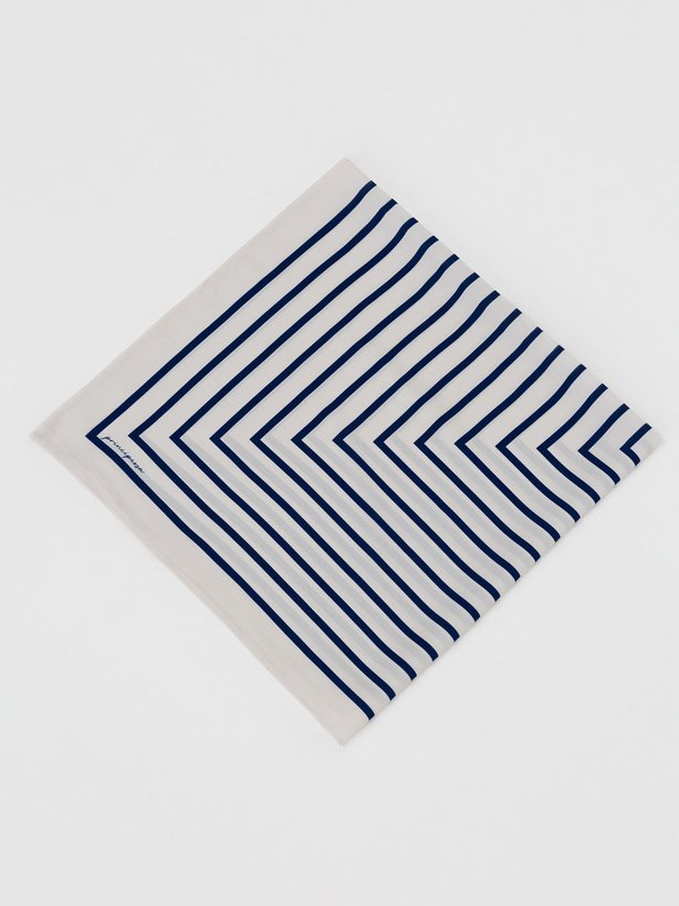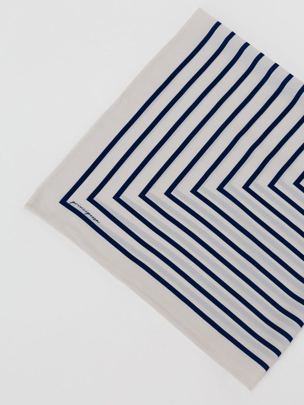 O lenço Dai traz elegância atemporal em uma proposta geométrica e marcante. Confeccionado em crepe leve, com toque suave e caimento fluido, a peça possui formato quadrado (90 cm x 90 cm), oferecendo versatilidade e estilo em cada detalhe. Sua estampa de listras em off-white e marinho cria um contraste sofisticado e contemporâneo, ideal para composições que transitam entre o clássico e o moderno. Perfeito para ser usado no pescoço, nos cabelos, como faixa ou amarração em bolsas, o lenço adiciona personalidade e refinamento ao visual. Um acessório versátil que transforma combinações simples em produções cheias de charme, autenticidade e elegância com estilo marcante.
