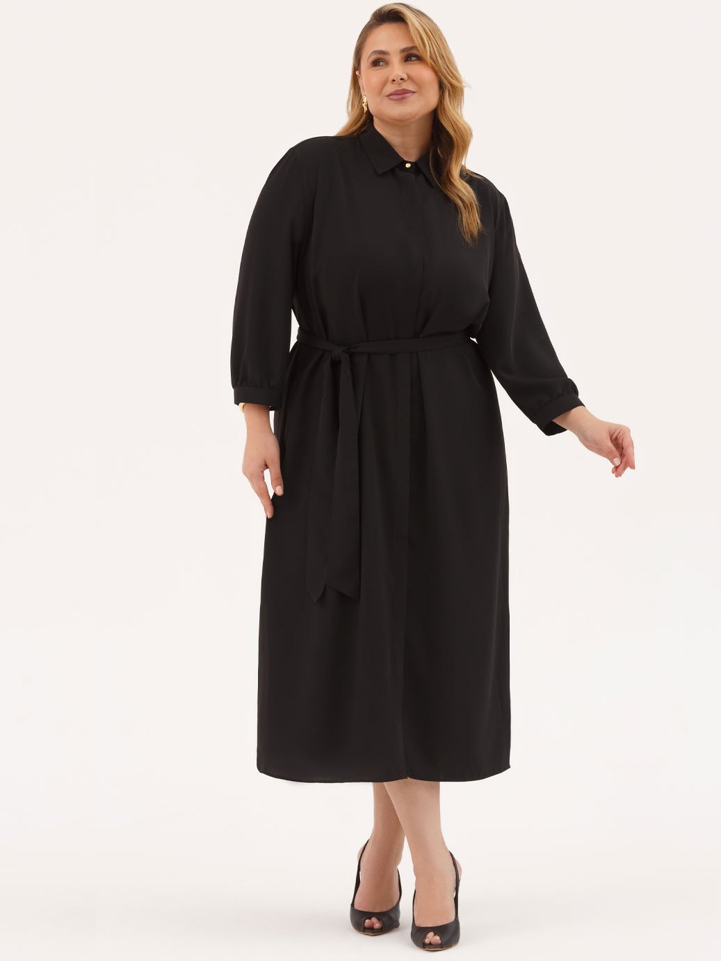 Vestido Midi em Viscose Plus Size Preto Coralie