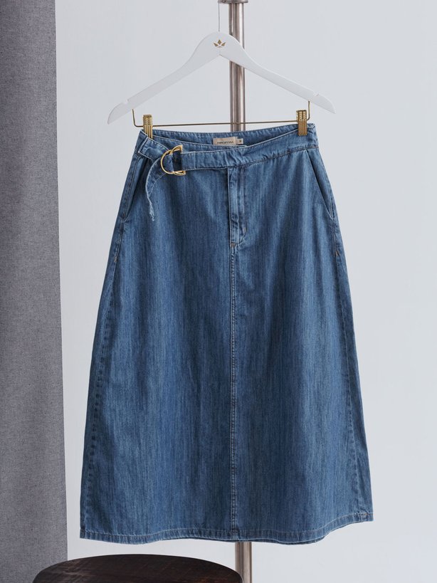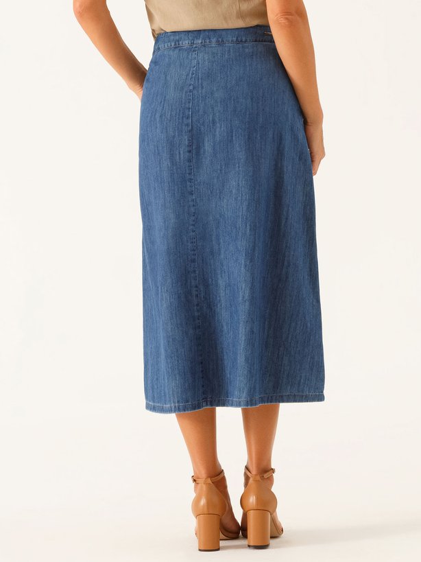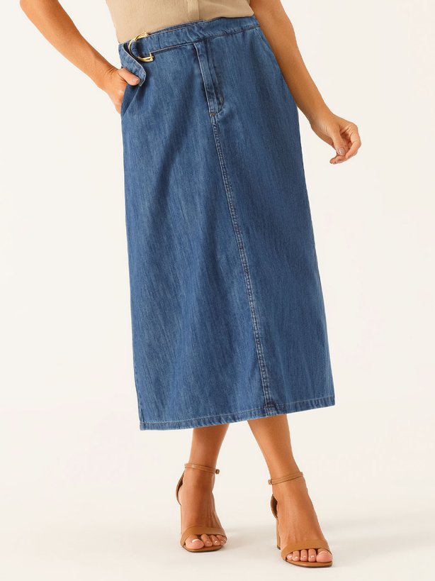 A Saia Jeans Vanice une praticidade e estilo em uma proposta moderna. Com modelagem clássica que valoriza a silhueta. Seu design clean permite combinações versáteis, funcionando tanto em produções casuais quanto em composições mais alinhadas. O fechamento é feito por zíper na braguilha frontal e botão interno, assegurando um acabamento discreto. Para enobrecer o cós, a peça recebe uma faixa fixa na parte da frente com fivela dupla em meia-argola dourada, detalhe que adiciona sofisticação ao visual, além de bolso faca, que reforça a praticidade sem perder a elegância. Uma peça atemporal, perfeita para o dia a dia com charme e autenticidade.