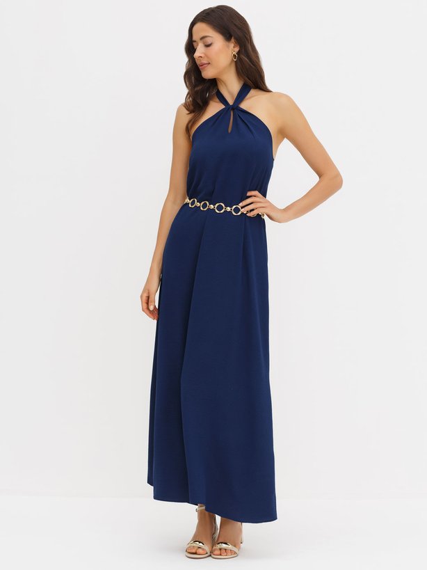 O vestido Patrizia traz uma proposta elegante e sofisticada através de sua modelagem fluida em crepe, tecido leve que proporciona caimento impecável e movimento suave. Seu design apresenta decote halter com amarração no pescoço, valorizando a região do colo de forma delicada e moderna. As cavas mais amplas trazem leveza à peça, enquanto o comprimento longo em azul-marinho reforça a sofisticação e versatilidade do vestido. Clássico e atemporal, o Patrizia é ideal para ocasiões especiais, mas também pode ser usado em produções contemporâneas, combinado a acessórios marcantes para diferentes estilos. Um modelo que une feminilidade, conforto e modernidade em uma única peça.